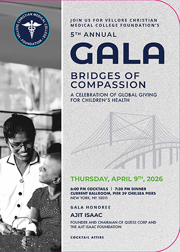 Don’t miss the CMC Vellore Foundation’s Fifth Annual Gala; “Bridges of Compassion: A Celebration of Global Giving for Children’s Health.”