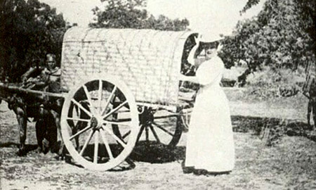Ida with her medicine-filled horse cart